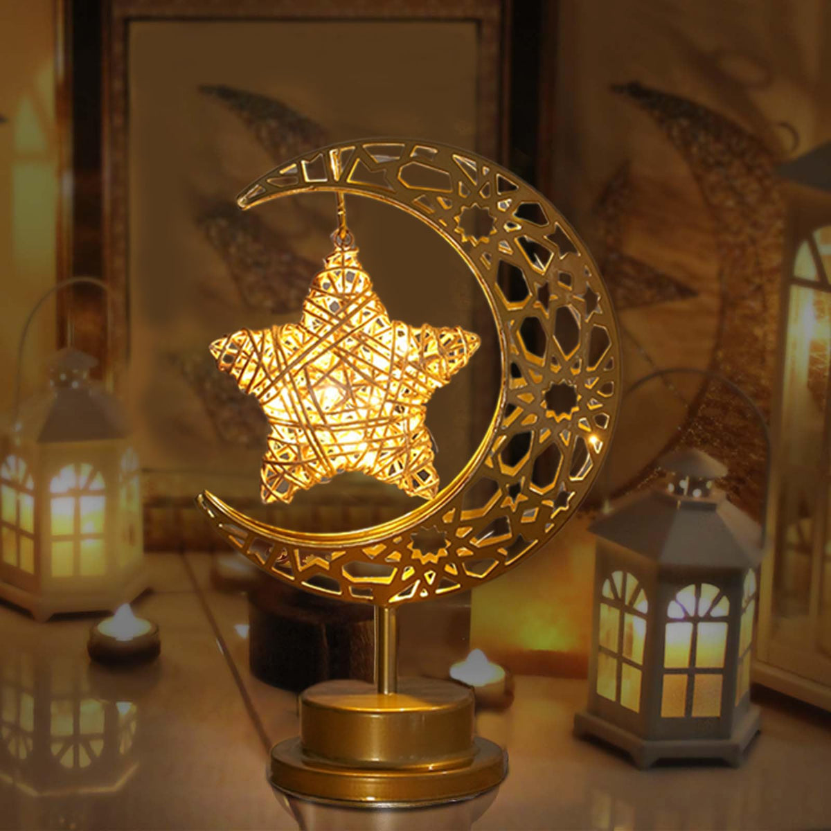 Finition dorée artisanale, LED longue durée, design exclusif étoile-lune pour le Ramadan